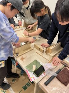毎年恒例の箸づくりと絵馬づくりは、大工さんに教えてもらいながらみなさん楽しまれていました。