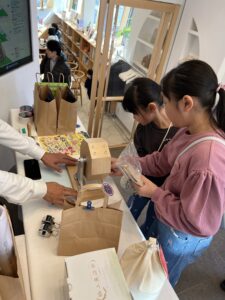 地下では、宝石せっけんづくりやバスボムカップづくりに子供たちが楽しそうに参加されていました。