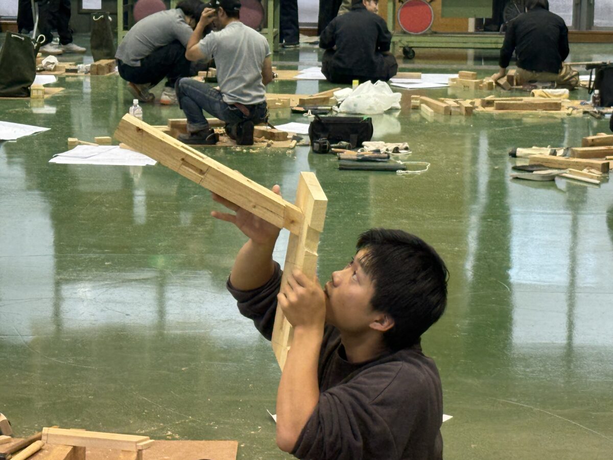 2日目は、東京建築高等職業訓練校 府中校を訪問し、実習棟や座学の様子を見学。1年生は「四方転び」、2年生は「振れ隅」の実習に取り組んでおり、参加者はその熱心な姿勢に深い関心を寄せていました。職業訓練の現場を通して、大工育成の仕組みや教育の在り方について理解を深める貴重な機会となりました。