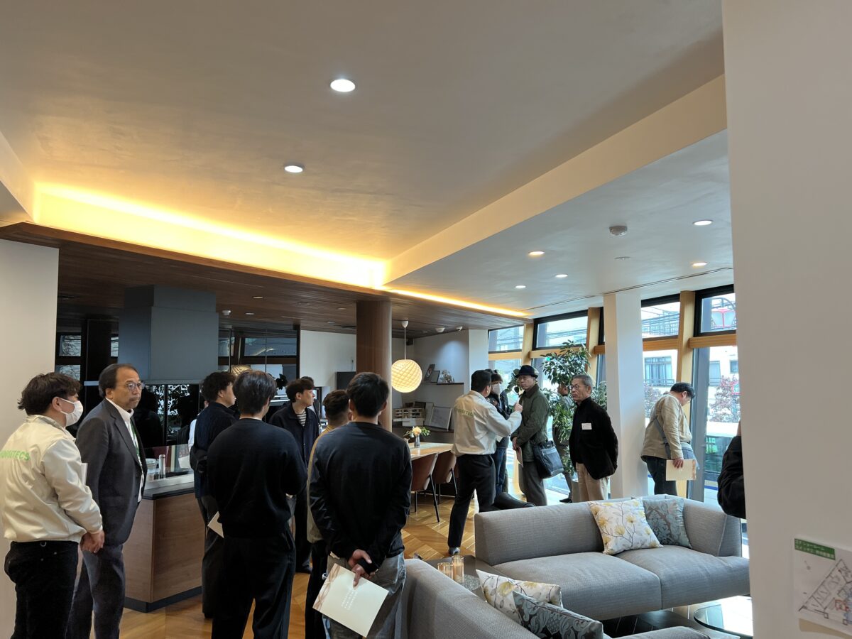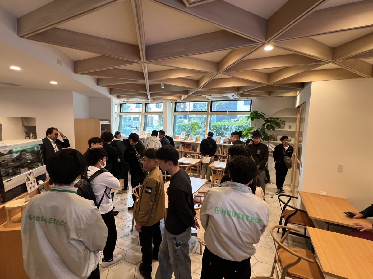 ハウステックス本社では、ショールームをはじめ各フロアや地下の「くらもとファクトリー」などをスタッフがご案内し、社内での取り組みや職人育成の環境づくりについてご紹介しました。実際の建築現場での工夫や大工との連携方法などについても多くの質問が寄せられ、活気ある交流の場となりました。